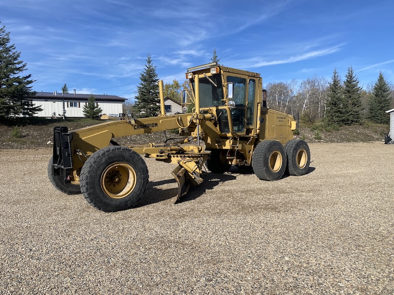 – Champion 730 Motor Grader, 17.5 x 25 tires, power shift trans, Cummins diesel engine, showing approx 14,450 hrs, starts and runs good / LOCATED AT: Endeavour, Sk (South of Hudson Bay, Sk)