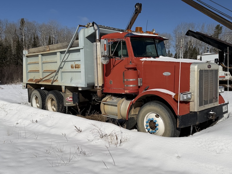 -1991 Peterbilt T/A Gravel Truck, Cummins diesel, 8 spd trans, 11R 24.5 tires, 15’ steel box & hoist