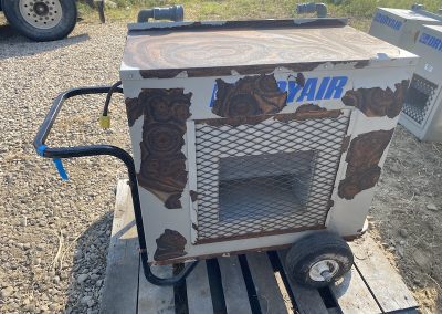 – Ground Heater, mounted on single axle trailer, 185/80 D13 tires, diesel engine, hose & reel enclosed, showing approx 9,636 hrs / LOCATED AT: Prince Albert, SK