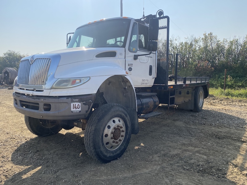 – 2004 IHC 4400 AWD Truck, IHC diesel engine, 10 spd trans, single axle w/ flat deck, 5th wheel plate, receiver hitch, 11R 22.5 tires, Marmon-Herrington all wheel drive unit, air brakes, showing approx 411,441 kms / 13,958 hrs / LOCATED AT: Prince Albert, SK