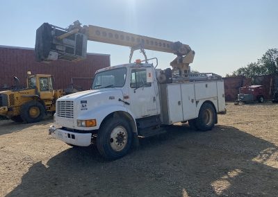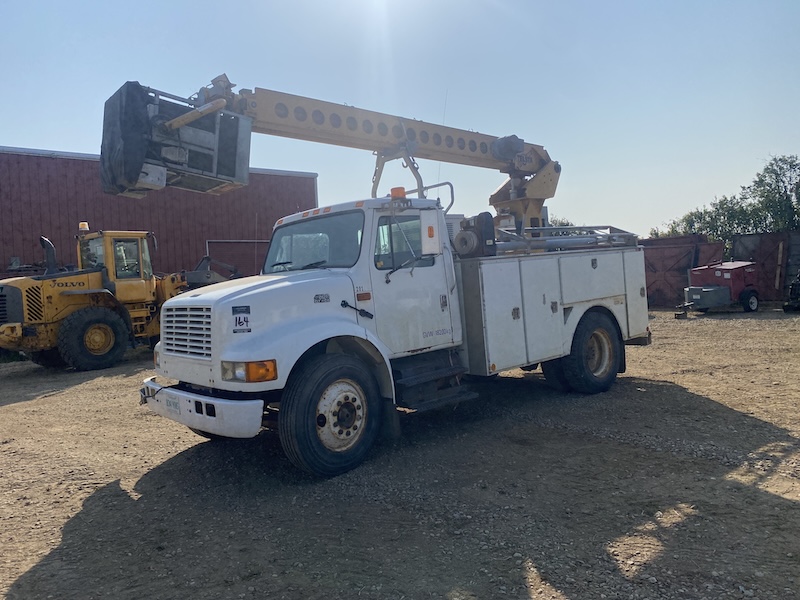 – 1994 IHC 4700 Bucket Truck w/ Service Body, IHC diesel, 6 spd standard, air brakes, 10R 22.5 tires, Telsta elec bucket runs off Onan gas generator, showing approx 236,947 kms / LOCATED AT: Prince Albert, SK